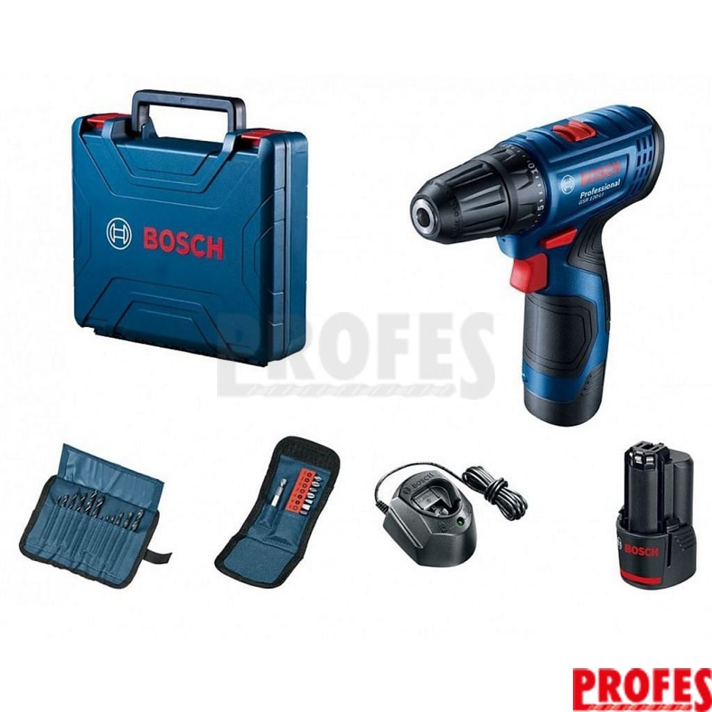 BOSCH GSR 120-LI PROFESSIONAL Aku vrtací šroubovák 2x 12V 2.0Ah + 23dílná sada bitů