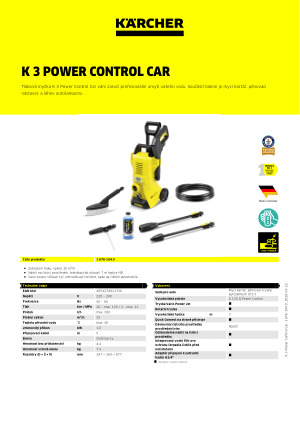 Tlaková myčka K 3 Power Control Car s mobilní aplikací Kärcher Home & Garden promění každého uživatele v odborníka na čištění. Mobilní aplikace obsahuje užitečného poradce, který uživateli pomáhá s praktickými tipy a triky pro každé čištění. Aplikace také nabízí komplexní službu včetně informací o zařízení. Zařízení je vybaveno vysokotlakou pistolí a pracovními nástavci s adaptérem Quick Connect. Úroveň tlaku lze nastavit přímo na nástavci Click Vario Power - pro maximální kontrolu nad každým úklidovým úkolem. Zařízení má také výškově nastavitelnou teleskopickou rukojeť pro pohodlný transport a skladování, sací hadici pro snadnou aplikaci čisticích prostředků, praktické držáky na příslušenství, vysokotlakou pistoli a kabel, stejně jako sedmimetrovou hadici. Sada Car obsahuje mycí kartáč, pěnovací nástavec a autošampon 500ml.
