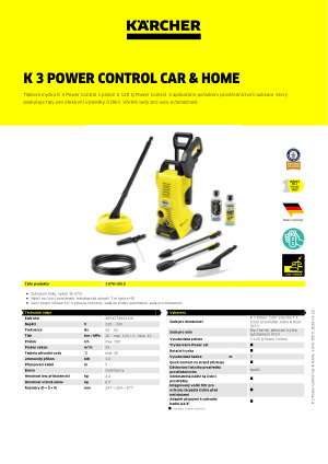 Díky praktickému aplikačnímu poradci v aplikaci Home & Garden umožňuje Kärcher dosáhnout ještě lepších výsledků čištění - a z uživatele udělá odborníka na čištění. Aplikace nabízí také komplexní servis včetně informací o zařízení, aplikaci a servisním portálu Kärcher. Vhodnou úroveň tlaku lze nastavit a zkontrolovat na displeji stříkací pistole G 120 Q Power Control - pro maximální kontrolu a ideální tlak na každém povrchu. Mycí prostředek lze rychle a pohodlně aplikovat z integrované nádržky na mycí prostředek. K 3 Power Control zaujme také výsuvnou teleskopickou rukojetí pro pohodlnou přepravu a skladování, stojanem pro zajištění stability, držáky na příslušenství, vysokotlakou pistoli a kabel, jakož i systémem Kärcher Quick Connect. Stojan lze použít jako rukojeť pro přenášení, což vám umožní přístroj snadno uložit a naložit. Sada Car & Home Kit obsahuje mycí kartáč pro odstranění šedého filmu, pěnovou trysku pro dobře přilnavou pěnu, 500 ml autošamponu, čistič povrchů T 1 a 500 ml mycího prostředku "Patio & Deck".