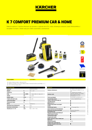 Tlaková myčka K 7 Comfort Premium Car & Home je ideální pro odstraňování silných nečistot z domu a automobilu. Součástí balení je sada Home Kit s čističem povrchů T 7 a 1 litrem čističe kamene a fasád a sada Car Cleaning Kit s rotační mycí kartáčem s vyměnitelným nástavcem, mikrovláknovým hadříkem a 1 litrem šamponu na automobily. Vodou chlazený a tudíž odolný motor je navržen pro časté čištění a zaručuje spolehlivý výkon. Integrovaný naviják hadice s hadicí PremiumFlex nabízí pohodlí a velkou flexibilitu. Kromě toho spouštěcí pistole G 180 Q COMFORT!Hold výrazně snižuje tlak při držení a vysokotlakou hadici lze rychle připojit díky systému Quick Connect. Inovativní 4v1 multi-jet tryska kombinuje 4 různé rozstřikovací vzory, které lze nastavit otočením hlavy trysky. Koncept 2 v 1 pro čisticí prostředky zajišťuje pohodlí a dokonalé nanášení čisticího prostředku v závislosti na použití. Kabely a příslušenství lze snadno uložit na zařízení a teleskopická rukojeť a kolečka s měkkým povrchem usnadňují přepravu. Podporu poskytuje aplikace Kärcher Home & Garden s integrovaným poradcem pro použití a užitečnými tipy a triky.